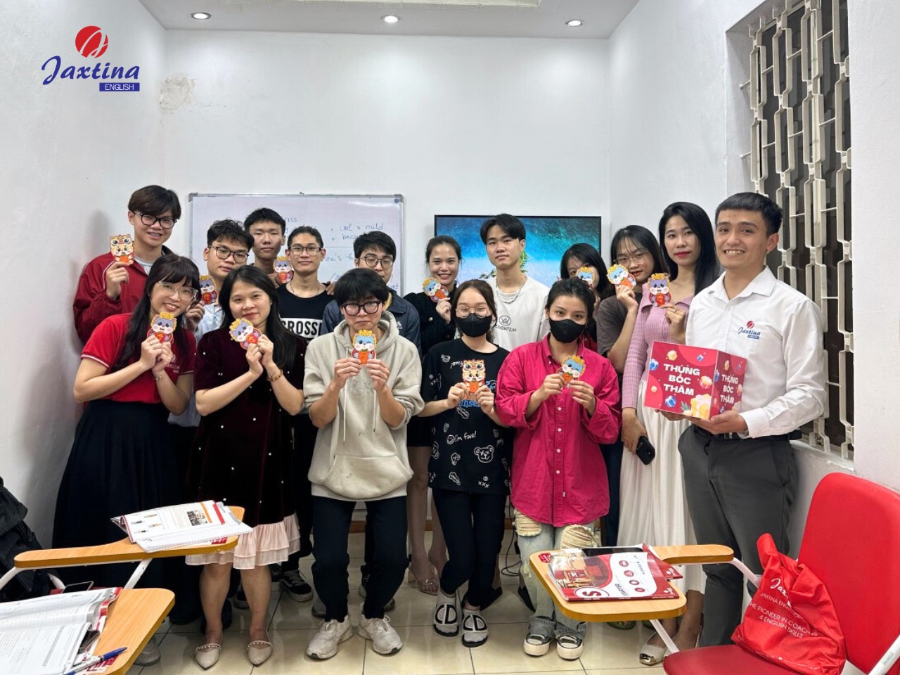 Ngay tuần học đầu tiên sau Tết, Anh ngữ Jaxtina đã có những hoạt động như lì xì, gieo quẻ,… với hy vọng một năm 2024 có thật nhiều học viên nhà Jaxtina đạt được mục tiêu của bản thân, đặc biệt là mục tiêu chinh phục Tiếng Anh. Bên cạnh đó, giáo viên nhà Jaxtina đã có buổi định hướng học tập đầu năm, nhằm thúc đẩy tinh thần của học viên cũng như giúp các bạn nhanh chóng làm quen lại với cường độ học tập.