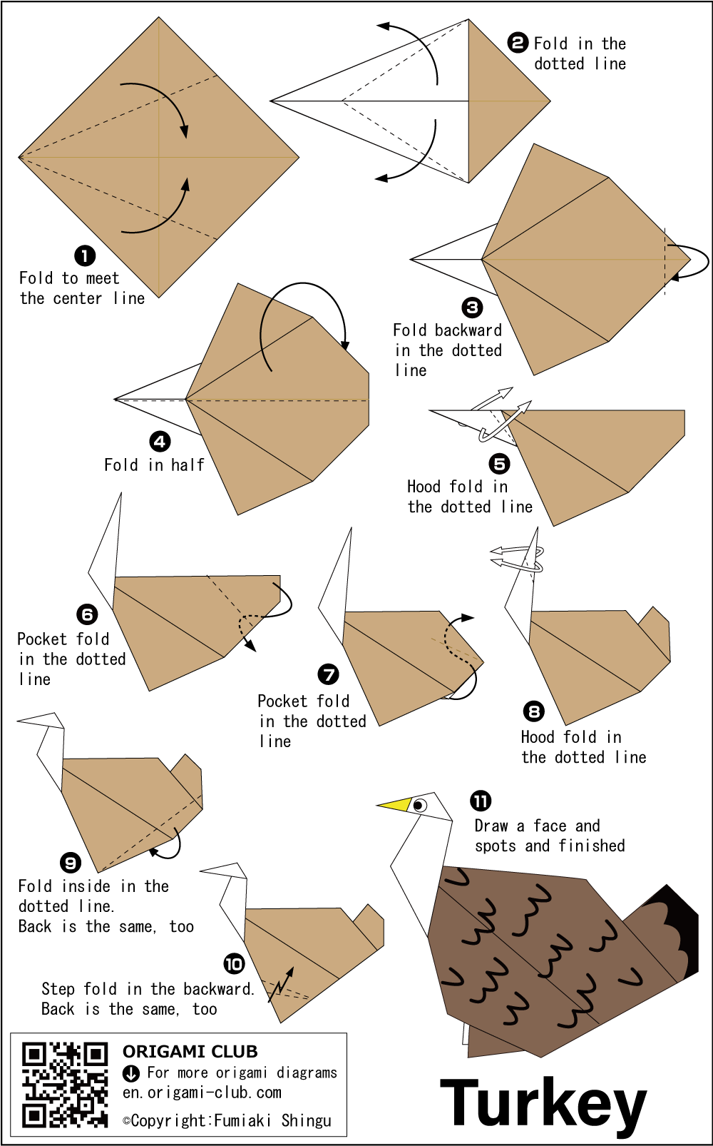 Hướng dẫn gấp Origami con gà tây